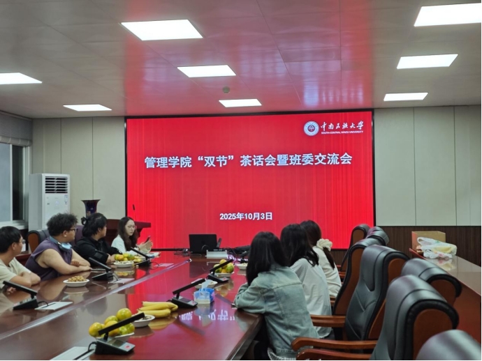 10月3日,管理學院2024級在206會議室舉辦了“雙節”茶話會暨班委交流會。管理學院2024級輔導員侯奉嘉與2024級學子歡聚一堂,在瓜果清甜、笑語盈盈的輕松氛圍中,共敘家國情懷,共話個人成長,共謀班級發展。會上,侯奉嘉圍繞學校、學院和年級近期重點工作展開細致講解;與會同學也積極發言,進行自我介紹,對學院和年級工作提出建議。