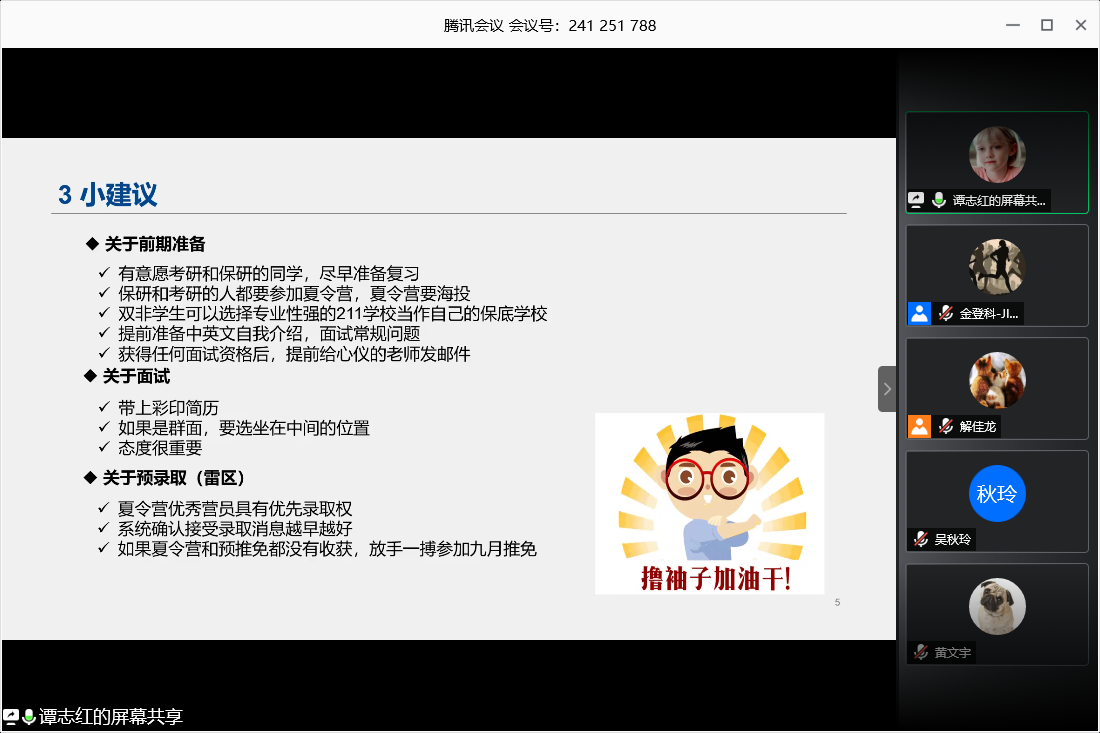 推免生譚志紅同學勉勵大家無論是考研還是推免,大家都要努力去嘗試和爭取機會,對待未來的挑戰不要擔心和害怕,努力爭取才有可能取得一定的成績。