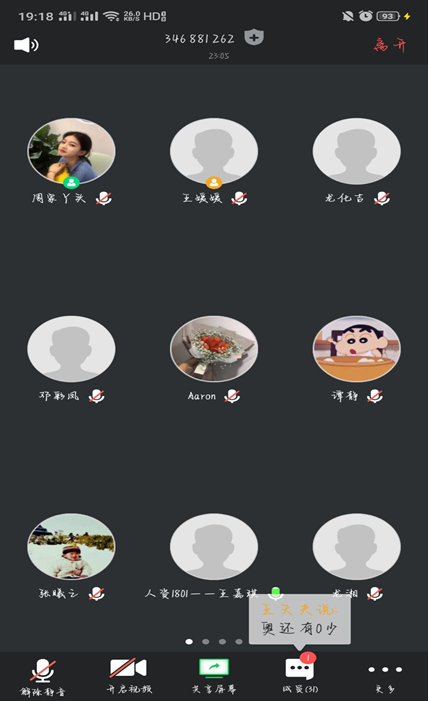 班會之前將導員拉進群與同學們一起互動交流。“假期分享”階段,在這個漫長的假期里,同學們都有很多話很多事想要分享,在家如何學習,安排作息等等內容,同學們都積極在群課堂下評論,或是采取連麥的方式,相互表達著思念。“網課感受”階段,導員連麥了解同學們的網課方式以及遇到的困難,并提出一些解決方法。