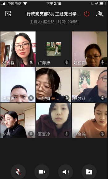 (文字作者:王宇娟)2020年3月23日下午14:00-16:00,管理學院行政黨支部積極響應(yīng)黨委組織部下發(fā)的《關(guān)于開展2020年3月份黨支部主題黨日活動的通知》,以“大考之中踐初心,抗疫一線黨旗紅”為主題,在周一下午召開了3月份主題黨日活動,管理學院行政黨支部全體黨員參加此次線上會議,會議采用企業(yè)微信在線視頻會議的形式進行,黨支部書記張玉蓉同志主持此次會議。