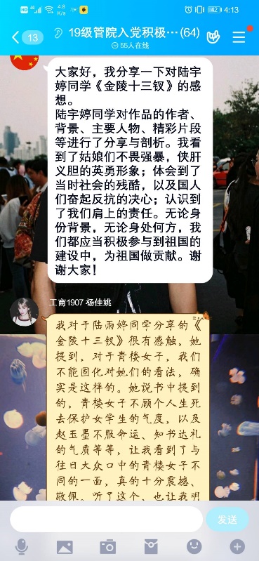 (文字記者:張婷)2020年3月28日晚,管理學院第一期2019級入黨積極分子讀書分享會圓滿舉辦。受疫情影響,時至三月末,全國各大高校都尚未開學,因此本次讀書會采用了線上分享的形式,由交流人通過視頻和語音來向大家分享書籍。