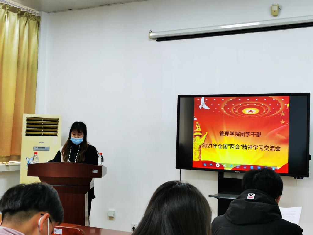 3月10日上午,管理學院組織團學學生干部學習2021年全國“兩會”期間習近平總書記重要講話精神學習交流會。會議由管理學院黨委副書記雷長生主持。