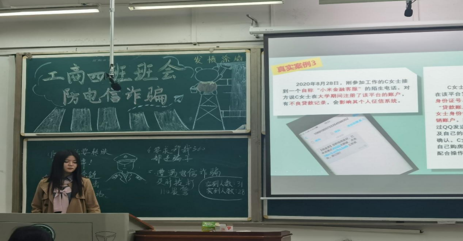 班會過程中,同學們認真聽講,熱情互動,積極參與答題討論,同學們各自分享了詐騙套路并分析其應對措施。通過學習,同學們對于詐騙的形式和常用手段有了充分的了解,提大家都清醒認識到不能貪圖一時便宜,而喪失警惕之心。最后,各班班長結合近期的警情通報向同學們介紹了發生在大家身邊的真實案例,讓同學認識到電信網絡詐騙離我們并不遙遠,一旦放松警惕,就會給自己帶來巨大的經濟損失。