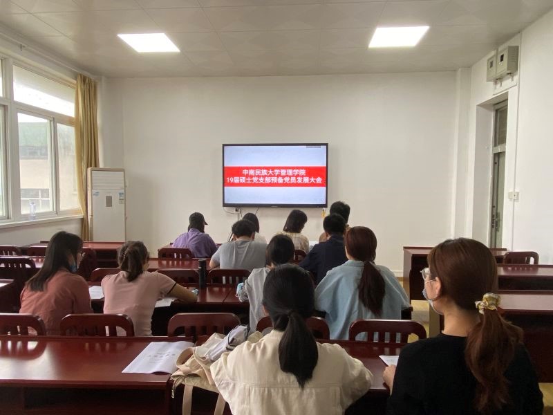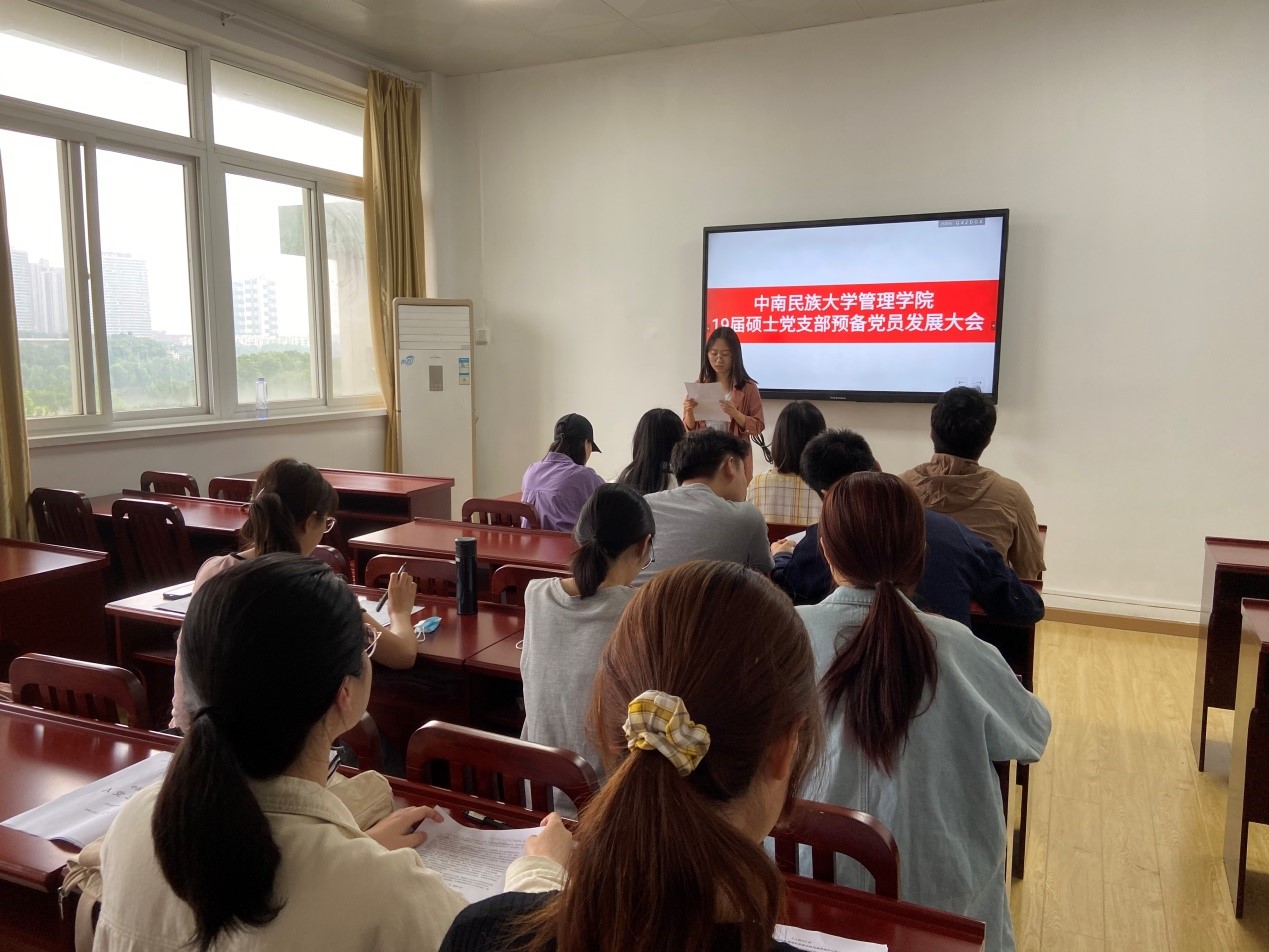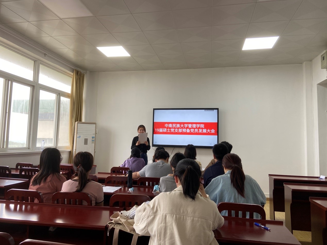 2021年5月18日下午,管理學院2019級研究生黨支部舉行預備黨員發展大會,討論黃柳等六名發展對象的入黨問題。