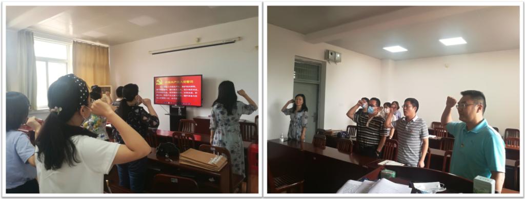 然后,李剛同志以《黨史上的入黨誓詞演變》為題講授專題黨課,細致講解了入黨誓詞產生的背景以及數次修改的時間與原因,領悟了黨所處的歷史時期和承擔的歷史任務決定了入黨誓詞的內容。隨后全體黨員面向黨旗,重溫入黨誓詞,集體進行了莊嚴的宣誓。宣誓結束后,黨員同志逐一繳納6月份黨費。