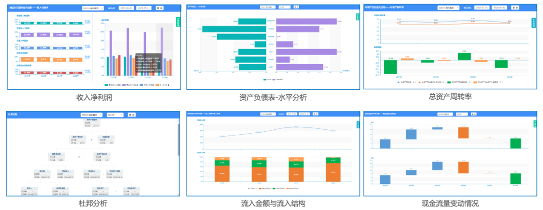 企業(yè)內(nèi)部數(shù)據(jù)包含了財務(wù)和業(yè)務(wù)數(shù)據(jù),外部則涵蓋了行業(yè)、產(chǎn)業(yè)鏈和宏觀數(shù)據(jù)。在這些數(shù)據(jù)之上,需要對數(shù)據(jù)進(jìn)行采集、加工、應(yīng)用,在整個數(shù)據(jù)處理流程中都貫穿著核算、管理、決策。大數(shù)據(jù)財務(wù)分析平臺將領(lǐng)先技術(shù)和教學(xué)場景有效融合,引入國內(nèi)上市公司真實數(shù)據(jù),引導(dǎo)學(xué)生利用內(nèi)置多樣圖表工具,通過可視化、智能化、動態(tài)化圖表的對比,研究企業(yè)經(jīng)營成果。