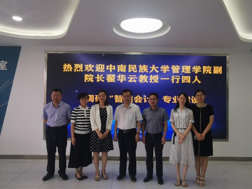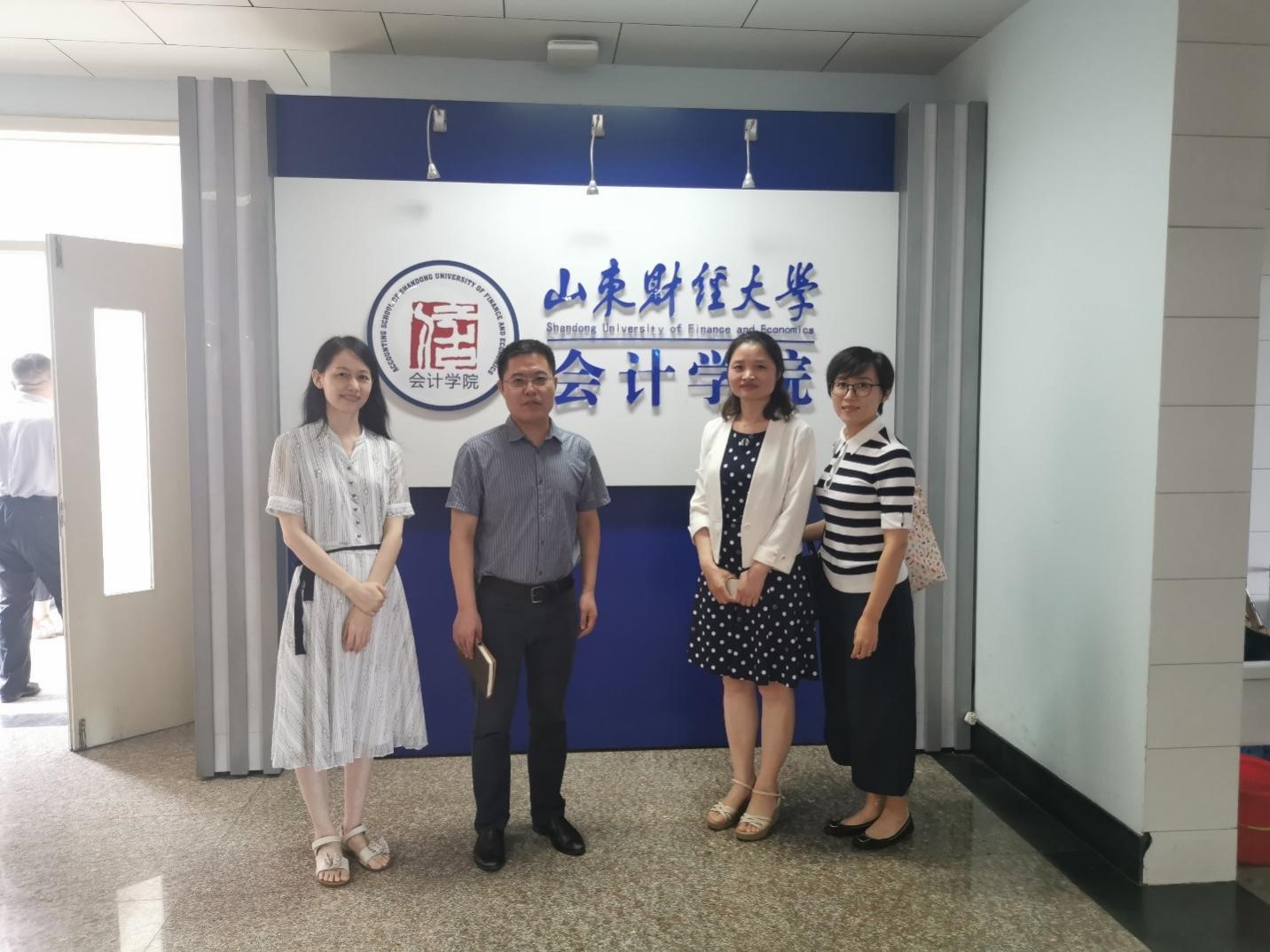 首先,翟華云副院長與李超鋒副院長帶領會計系教師在山東財經大學深入學習了智能會計班建設的實踐經驗。山東財經大學智能會計班已經開設兩年,撰寫了5本智能會計方向的教材,在全國高校智能會計學專業建設中走在前列。山東財經大學管理學院院長王愛國教授首先介紹了智能會計發展的方向與專業建設思路。山東財經大學管理學院會計信息化系主任牛艷芳教授系統介紹了山東財經大學智能會計實驗班建設經驗與培養方案等。會后翟華云副院長、李超鋒副院長、王愛國院長和牛艷芳教授進行了深入的交流,獲取了較為深入的專業建設意見。會計系主任劉華老師和會計系劉曉霞老師與山東財經大學會計信息化系教師也進行了深入交流,在課程建設與學生培養等方面都收獲了啟發性較大的建設意見。
