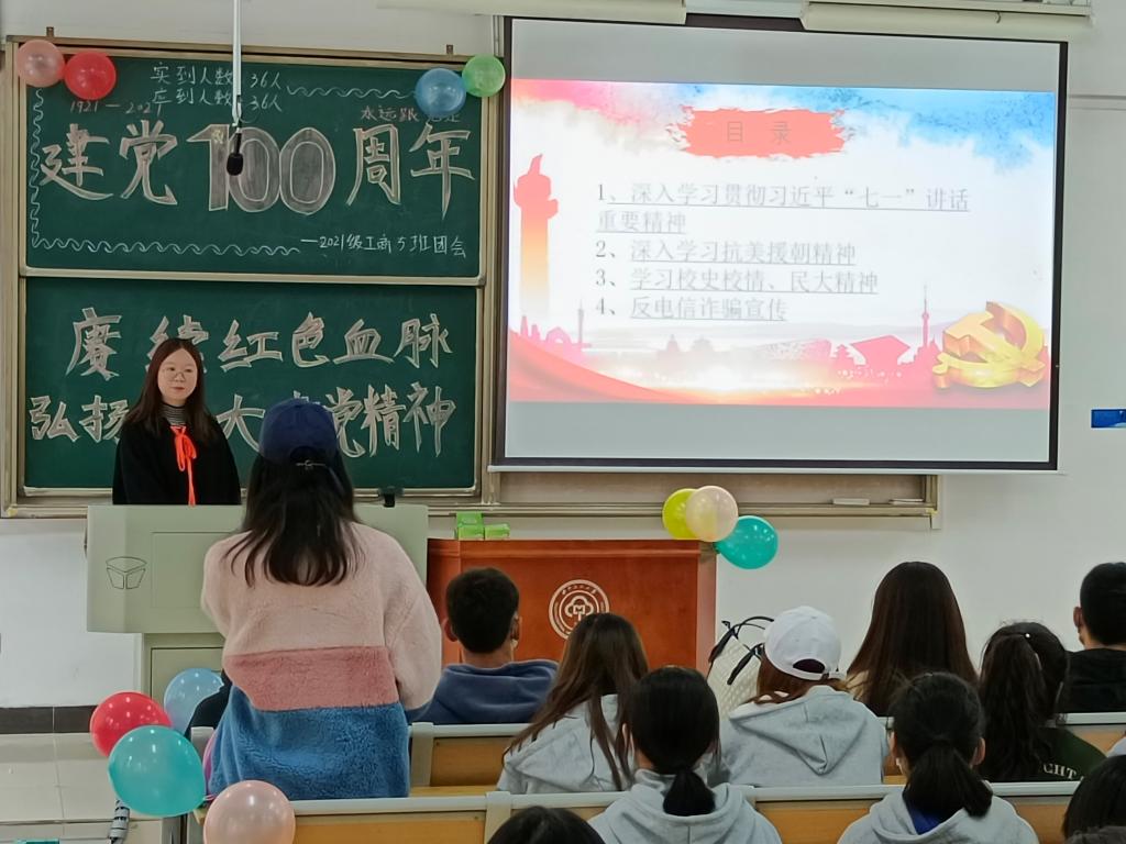 2021年10月22日至24日,管理學院各團支部在輔導員和班導師的指導下,陸續開展了以“深入學習貫徹習近平總書記‘七一’重要講話精神”“弘揚抗美援朝精神”“校史學習迎70周年校慶”“持續做好反電信詐騙宣傳”為主題的班團會。