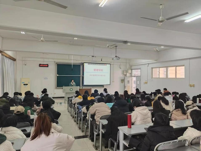 為使管理學院2021級碩士研究生更好、更快地適應新學期的節奏,促進師生間的相互交流及當前疫情防控形勢需要,2022年2月24日下午,管理學院在15號教學樓623教室召開了2021級全體全日制研究生年級大會,因生病實習等原因未返校同學也同步參加了線上會議直播。本次大會還邀請到了管理學院黨委書記鄒反修和分管研究生工作副院長周運蘭參加,會議由管理學院2021級研究生兼職輔導員許芳老師主持。