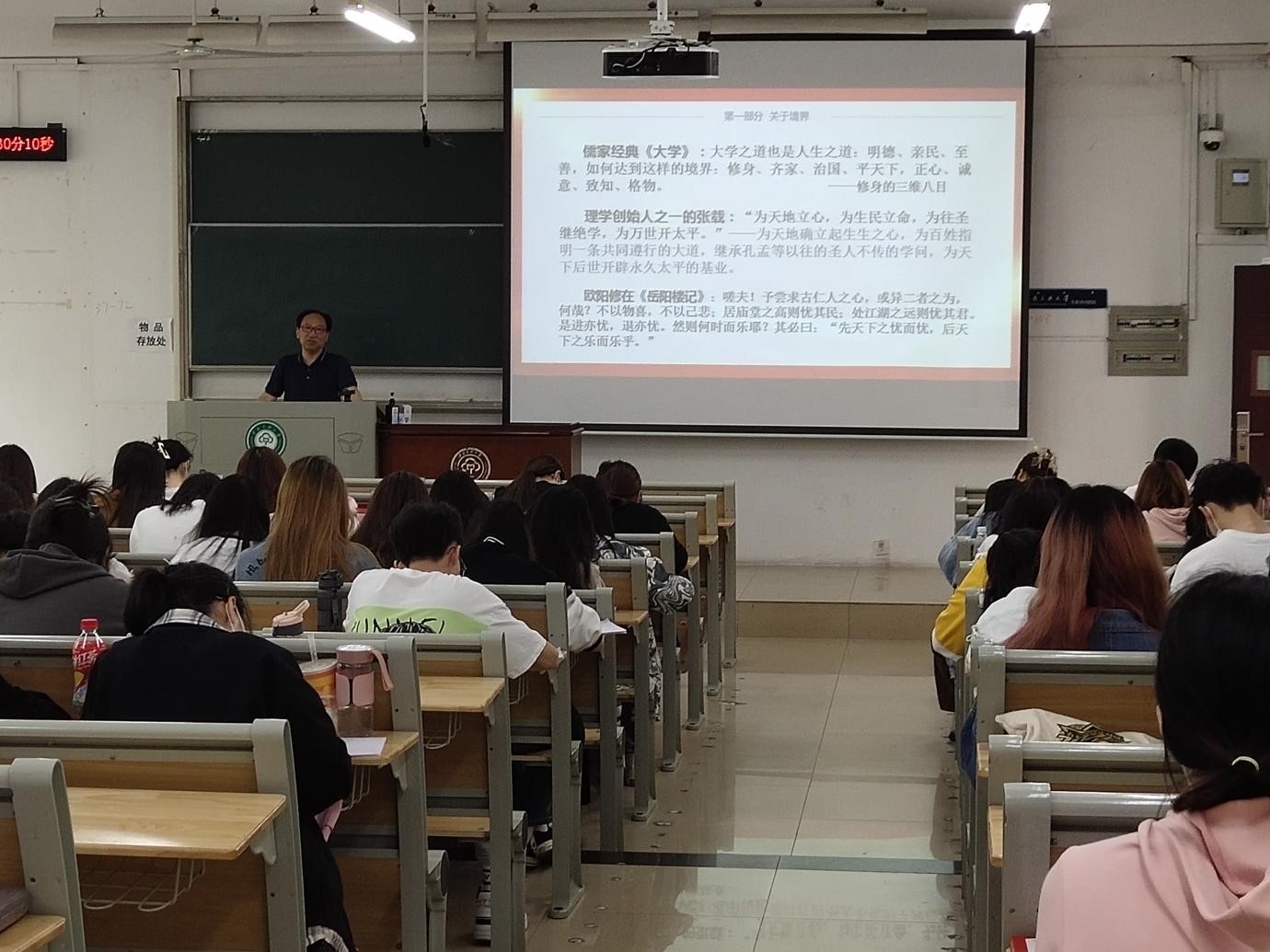 錢文彬以《志之所趨,無遠其屆》為主題展開,他結合多年的工作經驗,通過講述了多個優秀中國共產黨人的光榮事跡,說明了正確入黨動機的內涵,以及對于入黨的青年大學生來說,樹立正確的入黨動機的深刻意義。他在課上強調“黨員要把對共產黨主義事業的忠誠同執行黨的基本路線統一起來,在全面建設社會主義現代化國家中建功立業,所以思想上入黨是一輩子的事情。”強調了踐行“四講四有”要知行合一,號召廣大青年增強黨建知識,提高能力水平和自覺行動力,做新時代的合格新青年。