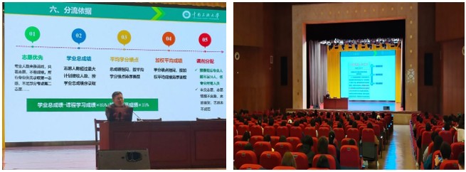 會上,李超鋒首先解讀了專業志愿填報的重要性,他向同學們講解了學院的專業分流政策與分流計劃,明確了每個專業的招收人數。隨后,他進一步說明了分流依據和分流流程,用簡潔明了的語言和圖例進行講解,使同學們對日后專業志愿的填報步驟有所了解。最后,他向2022級學生提出了幾點建議,一是廣泛了解,加強溝通;二是審視自我,尊重興趣;三是認真對待,慎重選擇。