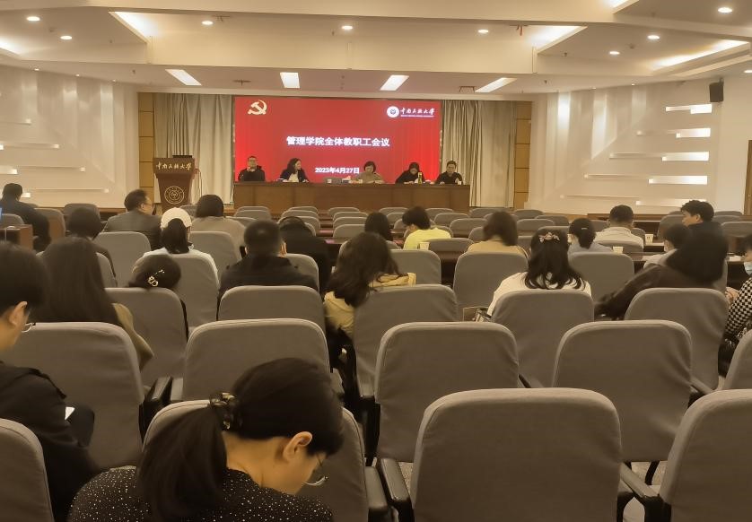 2023年4月27日,管理學院在潤良報告廳順利召開全體教職工會議。