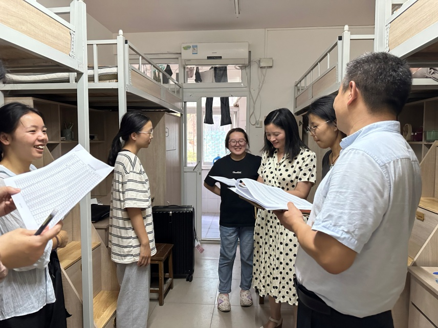 9月8日下午,管理學院院長翟華云、黨委副書記李明亮、2023級輔導員李丹一行走訪新生寢室。在走訪中,他們親切詢問了學生的基本情況,同時就新生報到、宿舍安排及適應情況都做了了解。