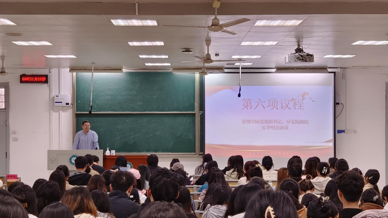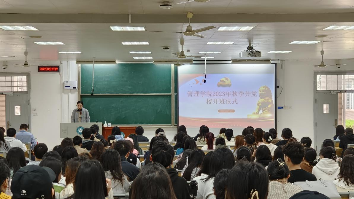 11月4日上午,管理學院2023年秋季分黨校開班儀式在15棟教學樓105教室舉行。學院黨委副書記、分黨校副校長李明亮出席開班儀式,2022級輔導員曾城皓、第96期入黨積極分子全體學員、第15期發展對象全體學員及第16期預備黨員全體學員參加開班儀式。開班儀式由2021級輔導員田堯主持。