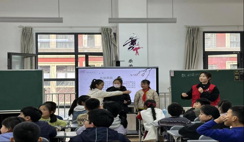 3月是雷鋒精神系列志愿服務(wù)活動(dòng)月,為貫徹黨的教育方針,落實(shí)立德樹人根本任務(wù),培養(yǎng)德智體美勞全面發(fā)展的社會(huì)主義建設(shè)者和接班人,中南民族大學(xué)管理學(xué)院團(tuán)委組織20名青年志愿者于2024年3月14日下午赴武漢市光谷第十小學(xué),為五年級十班的學(xué)生開展“移動(dòng)民族博物館”專項(xiàng)志愿服務(wù)活動(dòng)。