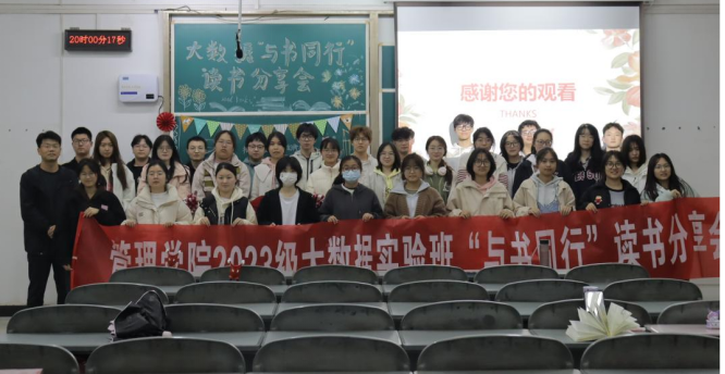 本次讀書分享會為同學們提供了一個展示自己閱讀成果和交流心得的平臺,不僅帶來了一次難忘的閱讀體驗,還為2023級大數據實驗班營造了良好的閱讀氛圍,增強了班級凝聚力,也相信在未來的日子里,同學們將以更加飽滿的熱情投入到閱讀中去,不斷提升自己的綜合素質和文化修養。最后本次讀書分享會在所有師生合影留念中圓滿結束。