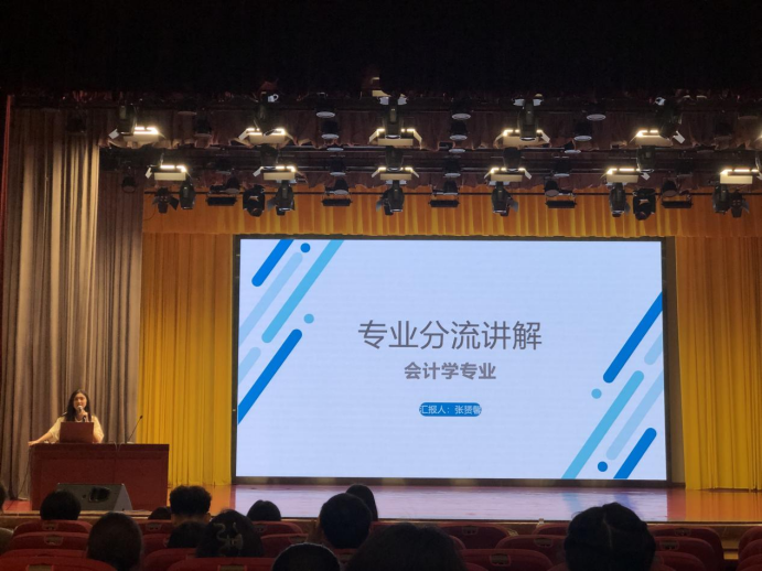 為貫徹落實《管理學院2023級大類招生專業分流實施方案》,扎實做好學院專業建設,深化學生對各專業特色的認識,推動專業分流工作有序開展,4月13日下午,管理學院于學術會堂召開了2023級財會專業分流交流會。2023級全體工商管理類專業學生參會,會議由2023級輔導員李丹主持。