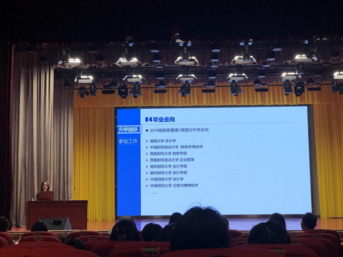 會議特邀2023屆財務管理專業畢業生,校友嚴哲、楊孟嬌、徐源璞,2023屆會計學專業畢業生,校友肖宇航、張赟馨、夏雪、唐心燕返回母校,為學弟學妹們厘清專業選擇思路,提供有力榜樣指導。