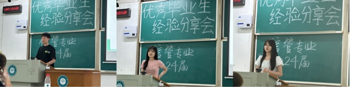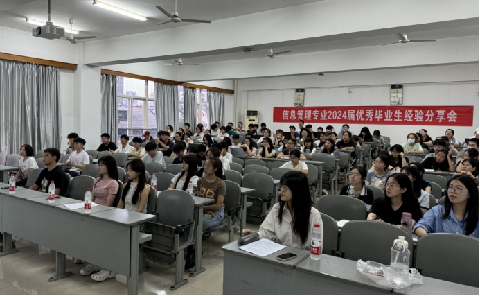(文字記者:張含森、李煜昊)為了進一步加強學風建設,充分發揮優秀畢業生的典型示范和榜樣激勵作用,6月12日19點,管理學院信息管理專業于15棟619教室成功舉辦了2024屆優秀畢業生經驗分享交流會。本次分享會邀請了10位優秀的20級信管專業畢業生,采用線下線上相結合的方式,分別從保研、考研、就業三個方面進行了經驗分享。參加此次活動的有信息管理系楊單、杜文華老師,以及信息管理專業21/22/23級一共近百余名同學。