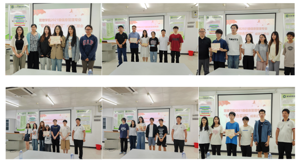 2024年6月19日下午,管理學院信息管理與信息系統專業于16棟教學樓103實驗室成功舉行了2021級信管專業實訓成果匯報會,本次匯報會主題為管理學院2021級信息管理專業“專業綜合實訓”的項目發布、成果匯報、評優暨結業典禮。匯報會由陳漢彬、藍天同學擔任主持人,全體2021級信管專業同學參加,參會的領導和老師有管理學院信管系楊單、楊健、杜文華、張晴老師以及實訓合作企業武漢凡諾芯科技有限公司指導教師歐陽旻、黃民智、林焰鋒老師等。