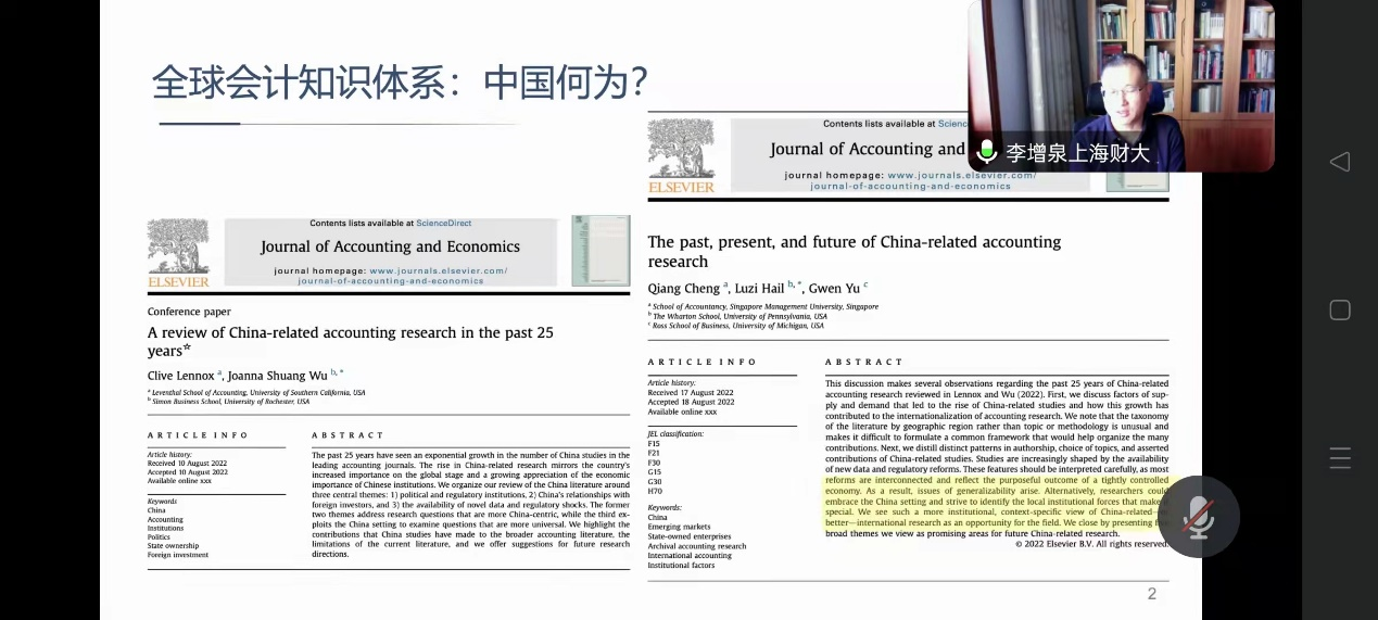 翟華云教授指出:李增泉教授的講座從頂層邏輯思考中國(guó)會(huì)計(jì)研究的意義,從中國(guó)問(wèn)題、中國(guó)實(shí)踐出發(fā),要求我們做出致力于中國(guó)、功于全球的會(huì)計(jì)研究。此次講座不僅加深了與會(huì)者對(duì)中國(guó)會(huì)計(jì)研究意義的認(rèn)識(shí)和理解,還開(kāi)拓了與會(huì)者未來(lái)如何思考中國(guó)會(huì)計(jì)問(wèn)題,做出有意義的會(huì)計(jì)研究。未來(lái),隨著中國(guó)在全球經(jīng)濟(jì)中的地位不斷提升,中國(guó)會(huì)計(jì)研究將繼續(xù)發(fā)揮重要作用,為推動(dòng)全球會(huì)計(jì)知識(shí)體系的發(fā)展貢獻(xiàn)中國(guó)智慧和中國(guó)方案。