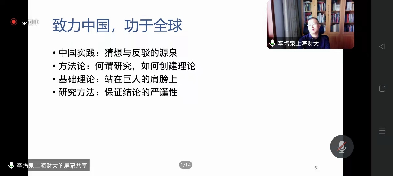管理學(xué)院第二場(chǎng)“新文科–新融合–新管理”暑期系列講座在2024年7月30日上午線上開(kāi)講,上海財(cái)經(jīng)大學(xué)會(huì)計(jì)學(xué)院教授,博士生導(dǎo)師,黨委常委、副校長(zhǎng)李增泉教授受邀做主題為《中國(guó)會(huì)計(jì)研究的意義》的講座。此次講座由院長(zhǎng)翟華云教授主持,管理學(xué)院師生100余人參加會(huì)議。
