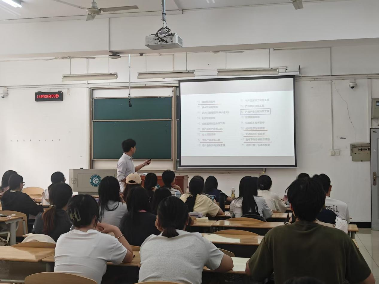 在授課過程中緊緊抓住同學們的注意力,將理論知識與企業實際數據緊密結合,打破生產決策分析過程的復雜壁壘,講“活”了課堂。詳實的數據案例,逐步分析;清晰的解題思路,層層遞進;熱烈的課堂互動,積極活躍。課堂上的學習不僅充實了同學們的企業管理理論知識,還拓寬了大家對企業