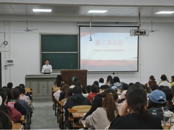 隨后,學(xué)員代表依次上臺發(fā)言,分享入黨初心與成長感悟。會計實(shí)驗2401班金靚琪作為入黨積極分子代表,以校訓(xùn)“篤信好學(xué),自然寬和”為切入點(diǎn),表達(dá)了主動向黨組織靠攏、錘煉過硬本領(lǐng)、勇?lián)鷷r代使命的堅定決心;信管實(shí)驗2301班張含森作為發(fā)展對象代表,圍繞踐行“三個模范擔(dān)當(dāng)”,從政治素養(yǎng)錘煉、專業(yè)知識學(xué)習(xí)、社會實(shí)踐參與三個方面,闡述了自身對黨員標(biāo)準(zhǔn)的理解與踐行路徑;財務(wù)管理2202班鄧黃楓作為預(yù)備黨員代表,深入解讀中華民族共同體意識的豐富內(nèi)涵,并莊嚴(yán)承諾將以更高標(biāo)準(zhǔn)嚴(yán)格要求自己,發(fā)揮先鋒模范作用,不負(fù)黨組織的培養(yǎng)與期望。三位代表的發(fā)言情真意切、擲地有聲,贏得現(xiàn)場陣陣熱烈掌聲。