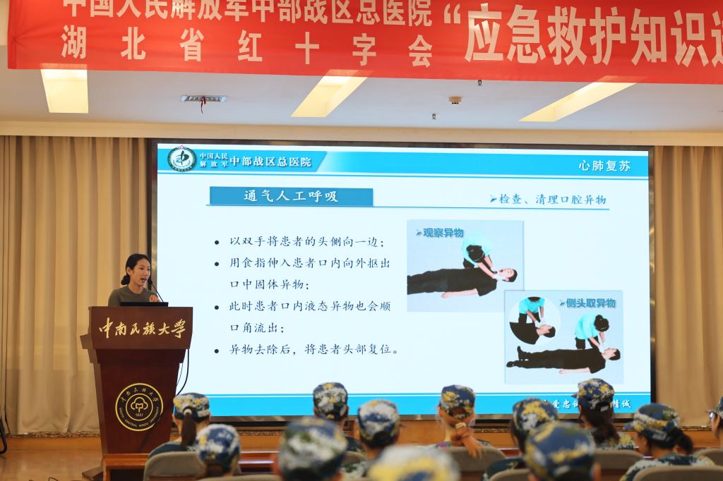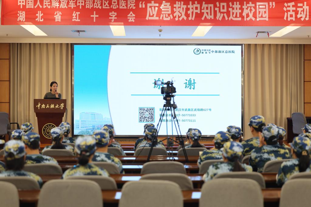 為做好2024級新生軍訓工作,落實學校《2024級新生軍事訓練工作手冊》醫療救護、安全教育相關要求,中南民族大學黨委學生工作部于9月11日上午在學術交流中心潤良報告廳組織舉辦“應急救護知識進校園”活動,通過應急救護知識講座的形式面向參加軍訓的新生普及急救知識。本場講座由中部戰區總醫院專家王依進行主講,武漢市紅十字會提供技術支持,學校6200余名本預科新生通過線上線下兩種方式參與本次培訓。