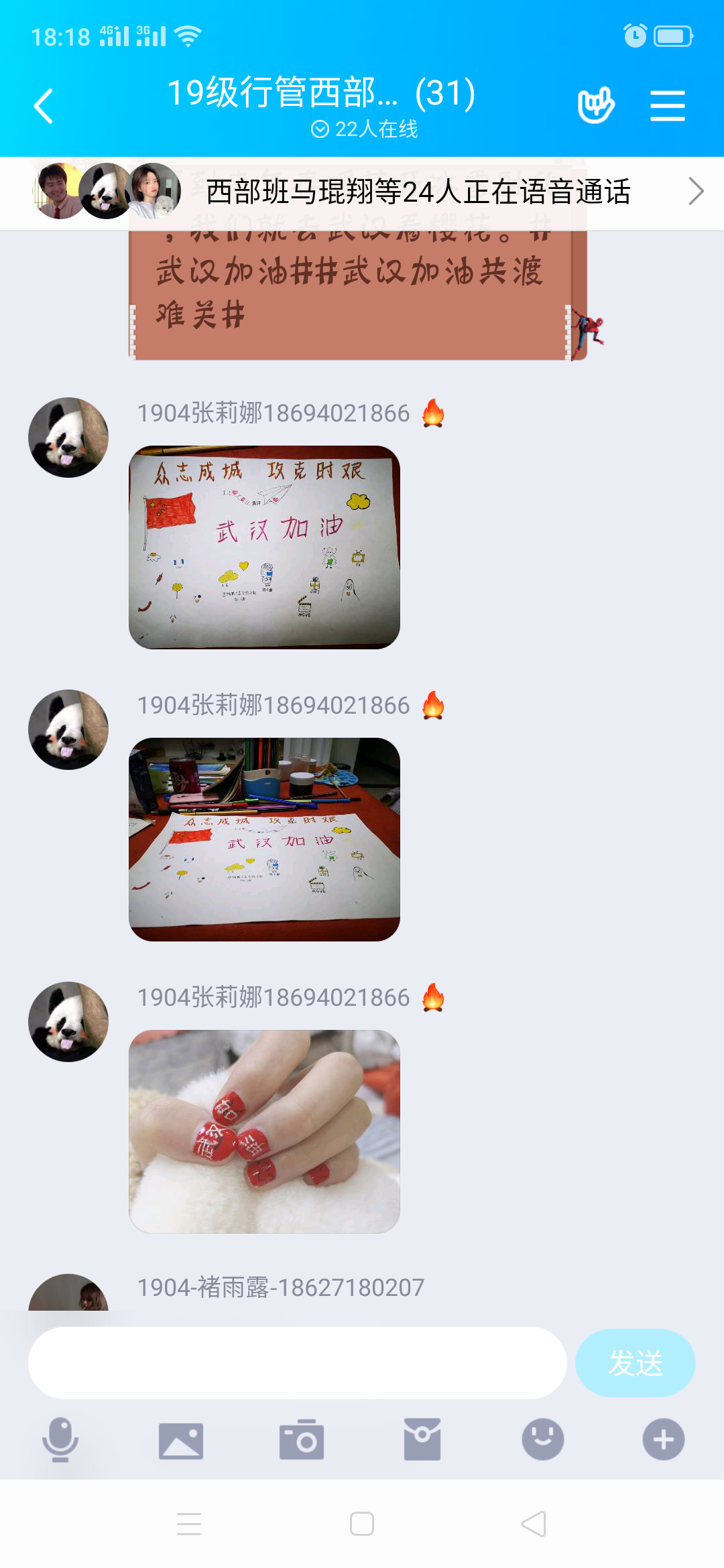 同學們在班會后自發組織拍攝的“武漢加油,我們在一起”活動。 各族師生雖遠隔千里,“在線”相牽,但“云”對話更暖人心。面對這場突如其來的戰“疫”,我校全體輔導員老師始終時刻心系學生、關愛學生、守護學生。特殊時期,化身QQ視頻會議、騰訊會議、釘釘等各類網絡平臺的“直播達人”,更是作為一名輔導員老師穿越時空及時掌握情況,及時發聲指導的及時行動。在這場沒有硝煙的戰場上,全體輔導員老師將站穩做好學生知心朋友和引路人的主戰場,以更頑強的意志、更堅強的黨性、更有力的行動,當好教育系統疫情防控的“大考之人”,站好疫情防控責任崗直至戰“疫”全面勝利。 (審核:李川國 編輯:梁瀟瀟)