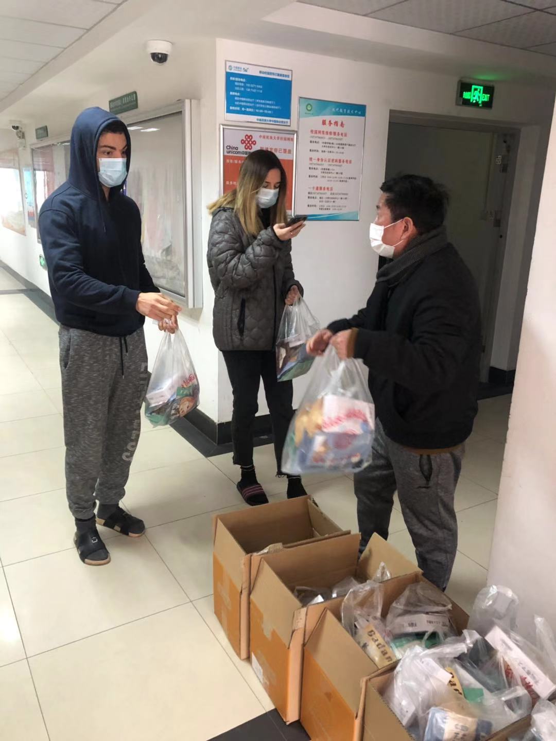 為留校學(xué)生發(fā)放防護物質(zhì)和生活用品。 唐永忠 攝 突出關(guān)心關(guān)愛。我校共有203名留校學(xué)生,其中留學(xué)生56名,分散居住在47座棟樓,52名生活輔導(dǎo)員在各樓棟堅守崗位。為做好留校學(xué)生的生活保障和安全保障工作,黨委學(xué)生工作部學(xué)生宿舍管理中心及時對各樓棟公共區(qū)域進行消毒,及時對留校學(xué)生的寢室進行紫外線照射消毒,及時在各樓棟大廳放置酒精消毒噴劑,對外出后進入樓棟學(xué)生的手部進行消毒并及時回收廢棄的口罩,堅持對每位學(xué)生每日早晚兩次測量體溫。學(xué)工部于1月26日和1月29日給每位學(xué)生發(fā)放溫度計、口罩和食物等慰問物質(zhì),做到所有留校學(xué)生全覆蓋。同時做好與校醫(yī)院、后勤保障處等有關(guān)部門的工作協(xié)調(diào)和服務(wù)聯(lián)動等工作。