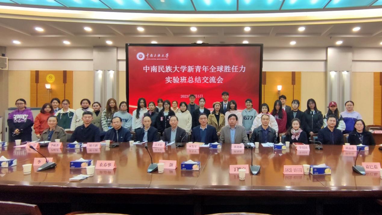 劉洋對我校第一期新青年實驗班工作給予高度評價。他說,作為全國第一批項目遴選高校59所之一,中南民族大學(xué)做出了有益的探索。同學(xué)們課程學(xué)習(xí)刻苦,成績優(yōu)異。中南民族大學(xué)4位同學(xué)(是全國高校名額給予最多的高校)被遴選參加國際組織國內(nèi)機構(gòu)的實習(xí)活動,一批同學(xué)被遴選參加暑期世界500強的實習(xí),充分說明本實驗班學(xué)生達(dá)到了培養(yǎng)目標(biāo)。中國教育國際交流中心將吸納同學(xué)們提出的好的建議,進(jìn)一步對新青年項目進(jìn)行優(yōu)化升級,期待為同學(xué)們未來發(fā)展提供幫助。