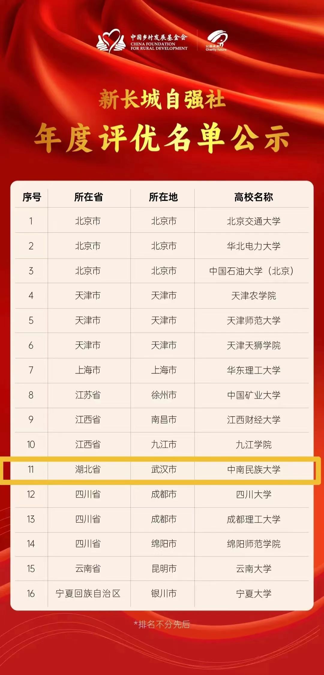 春和景明,萬象更新。近日,2023年新長城自強社年度評優結果揭曉,我校自強社從全國120多個新長城高校自強社中脫穎而出,榮登年度評優榜單,是湖北高校中唯一獲評的自強社。