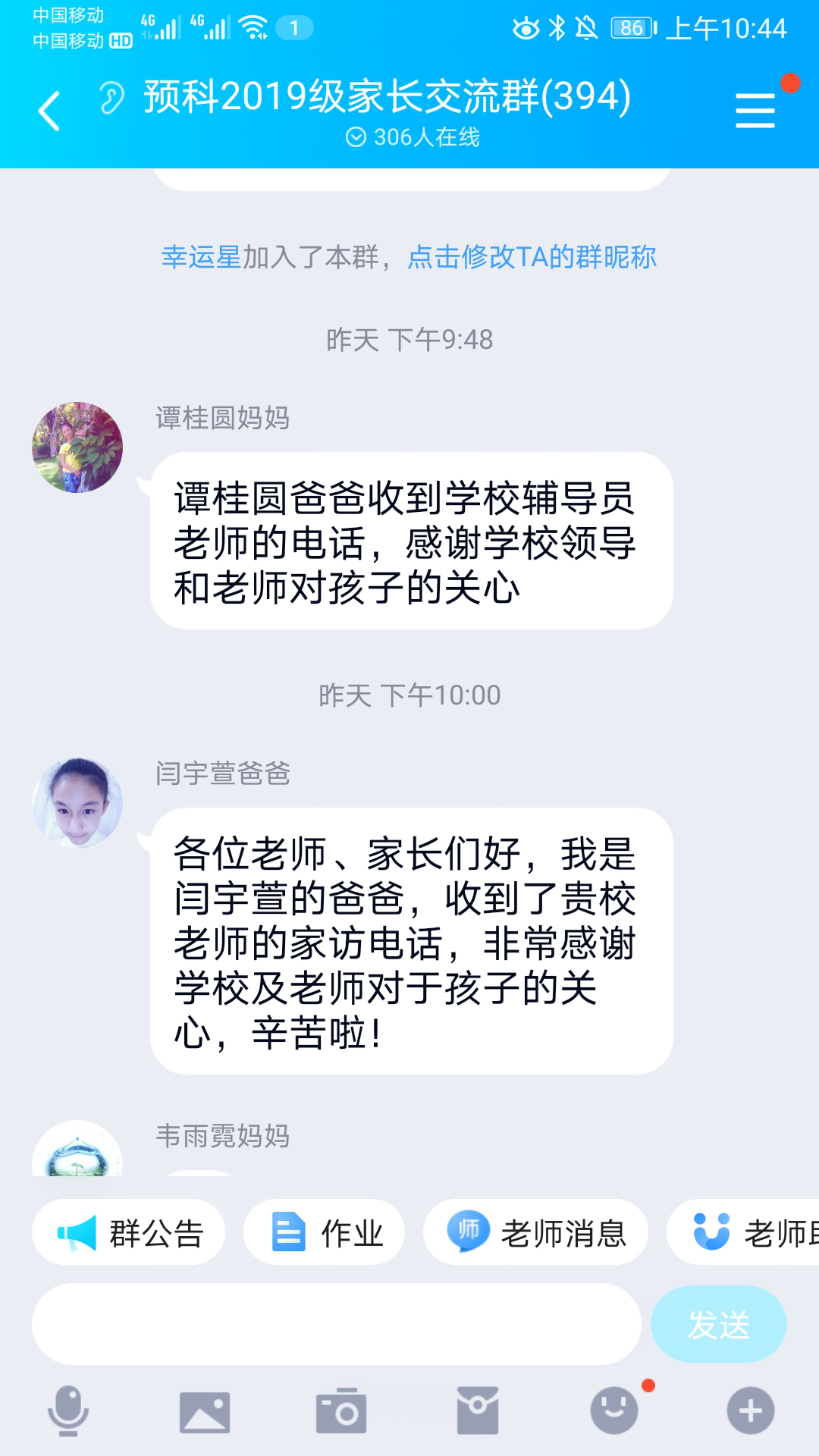 線上家訪工作的互動情況。 本次電話家訪共計與423名學生家長取得聯系,了解到絕大部分同學保持輕松樂觀心態,在家能按照課表要求自覺上網課,完成課程作業,積極配合、參與當地防疫工作,參與班級網絡主題班會,同時也整理出5類問題。電話家訪為做好疫情期間學生教育、教學工作提供了支持,也進一步密切了家校聯系,得到學生家長一致好評。 (來源:預科教育學院 編輯:梁瀟瀟) invisible