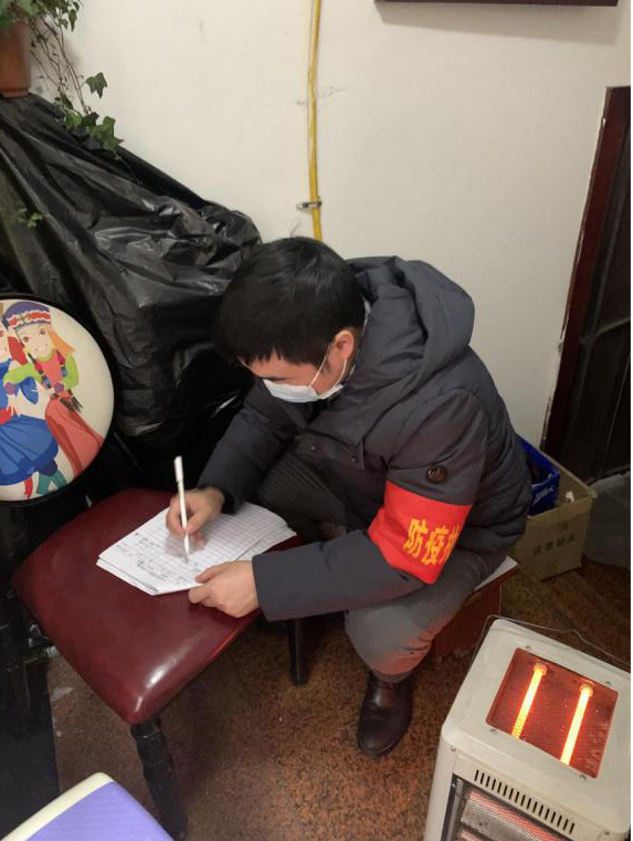 唐文翰在崗哨值班。 在這段時間,崗哨值班、入戶摸排成為了他新的工作內容,但是他內心更加擔心的是散落在全國十四個省市的學生們,擔心學生的身體健康問題,擔心學生的網絡上課問題,擔心高年級學生的職業規劃問題。為了讓學生在家中能夠更好的學習和生活,他不斷的和學生線上溝通交流,安排學生2017級學生干部進行學生學業情況、就業目標、四六級情況摸底并制成表格,針對不同情況逐一通過QQ、微信和電話進行遠程輔導;對2019級學生按照省份分組,創立互助小組,相互提醒、相互督促,推動學生在家不斷學習;動員所在支部的學生黨員就近向所在社區、村委會報道,主動承擔防疫志愿服務活動,目前以累計上崗7人。 在他心里,作為民大人,就應當無論到哪里都要堅持民大“篤信好學、自然寬和”的校訓精神,抱以博大胸懷踏實做人,認真做事;作為是老師,當以自身的身體力行影響和帶領學生;作為中共黨員,當以“為人民服務”為己任,以先賢為榜樣,不為艱難所阻、不為疫情所攔。 戰“疫”感言: 疫情是劫難,也是涅槃,當劫難來臨之時,我們唯有緊跟黨和國家的腳步迎難而上,才能戰勝疫情,而經歷了劫難才能夠更深刻的認識自己、認識這個世界,方能領悟何為“自然寬和”,唯有在抗擊疫情中不斷堅持,不斷前行,才能真的踐行“篤信好學”的真諦。作為一名黨員,當疫情來臨之際,投身一線防疫工作,是我應盡的義務;作為一名輔導員,在疫情來臨之時,帶領學生從生理到心理都戰勝疫情,是我應盡的責任。我堅信“天行健,君子以自強不息”,在黨和國家的統一調度指揮下,舉全國之力,我們定能在最短的時間內戰勝病毒,消滅疫情。正如“娘家人”的那封信中所說:“莫道浮云中蔽日,嚴冬過盡綻春蕾”,待那時,我將會與我的學生再次齊聚雙子塔下,共覽南湖風光。 (來源:體育學院 編輯:梁瀟瀟) invisible