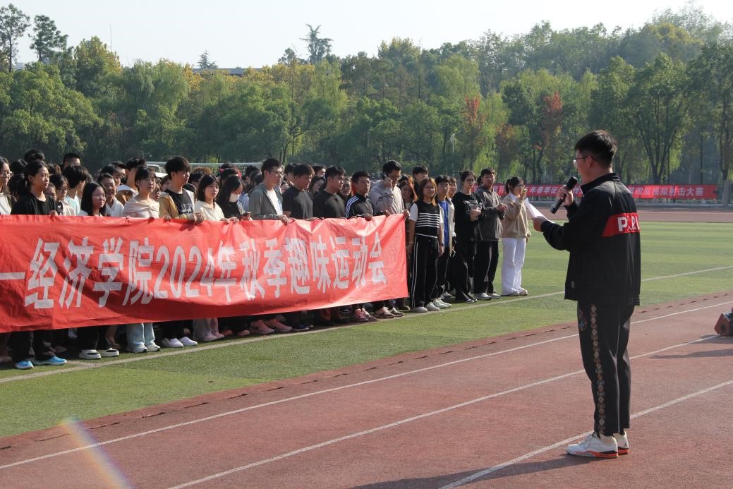為進(jìn)一步貫徹實施《全民健身計劃綱要》,積極響應(yīng)“全國億萬學(xué)生陽光體育運動”的號召,11月10日下午,經(jīng)濟(jì)學(xué)院在南湖操場舉辦了以“點燃運動激情 綻放青春活力”為主題的“繽紛秋日,趣享運動”經(jīng)濟(jì)學(xué)院秋季趣味運動會。經(jīng)濟(jì)學(xué)院本科生、研究生合計460余人以班級為單位組隊積極報名參賽。經(jīng)濟(jì)學(xué)院團(tuán)委書記安樹庭、班導(dǎo)師代表白勇軍、王斌、舒曼,研究生輔導(dǎo)員熊岳煒及2023級輔導(dǎo)員徐文洋到場參與。運動會開幕式由徐文洋主持。