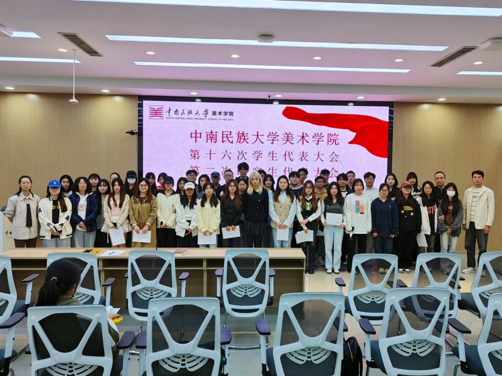 11月8日中午,中南民族大學美術(shù)學院第十六次學生代表大會、第二次研究生代表大會在美術(shù)館三樓報告廳召開。美術(shù)學院黨委副書記聶揚眉、團委副書記朱嘯天、張丁及本科生、研究生學生代表參加會議。