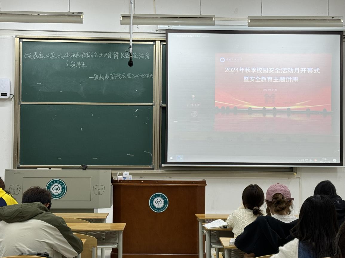 為了加強平安校園建設,提升師生安全意識和應對能力,維護校園安全穩定。2024年11月5日下午17時,中南民族大學在大禮堂舉辦2024年秋季校園安全活動月開幕式暨安全教育主題講座。預科教育學院2024級同學以大禮堂主會場代表和各班級分會場線上線下相結合的方式參會。
