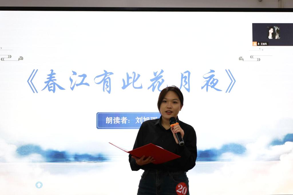 圖為預(yù)文2404班劉旭雨朗讀“春江有此花月夜”