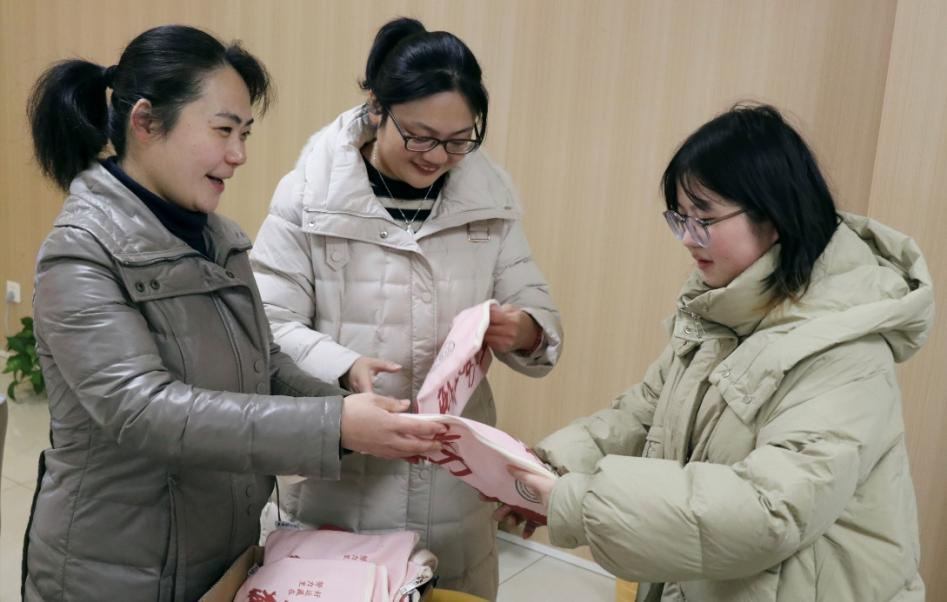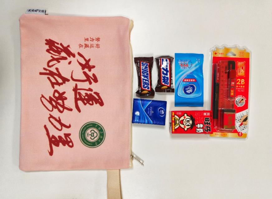 隨后,與會領(lǐng)導和輔導員、班導師走到學生面前,為學生送上考研大禮包。禮包包括考試文具套裝、紙巾、濕巾、士力架等物資,現(xiàn)場洋溢著溫暖的笑容和愉悅的笑聲。