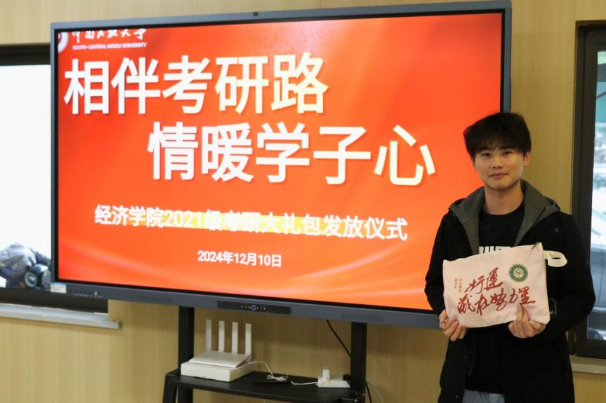 為加強對考研學子的關(guān)心慰問,鼓勵他們積極應(yīng)考,12月10日中午,經(jīng)濟學院在北區(qū)“一站式”學生社區(qū)會議室召開“相伴考研路,情暖學子心”為考研大禮包發(fā)放儀式。經(jīng)濟學院全體院領(lǐng)導,2021級班導師和輔導員,考研學生代表參加了儀式。儀式由2021級輔導員趙馳主持。