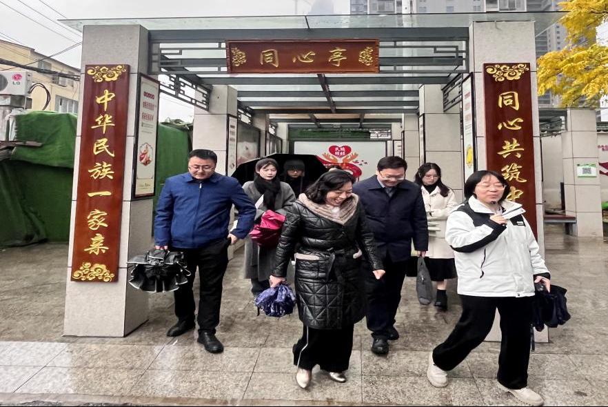 他們步行穿過遠近聞名的廣益橋牛羊肉市場,冒雨前往學(xué)院與民權(quán)街共建的同心亭長廊參觀。“中華民族一家親,同心共筑中國夢”的對聯(lián)映入眼簾,兩旁張貼著鑄牢中華民族共同體意識宣傳海報,旁邊一棵石榴樹枝繁葉茂,象征著民族團結(jié)與和諧。大家邊走邊看,邊聽講解員講述,一個個生動的社區(qū)民族團結(jié)故事激蕩心潮。