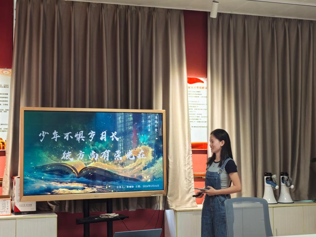 宣講團成員逐一展示,劉甜甜老師針對宣講的基本技巧和方法,如語言組織、表達方式、互動技巧等對宣講團成員逐一進行指導。鼓勵學員在制作課件時發(fā)揮自己的創(chuàng)新意識,不拘泥于模板和常規(guī),嘗試使用新的設(shè)計理念和技巧。