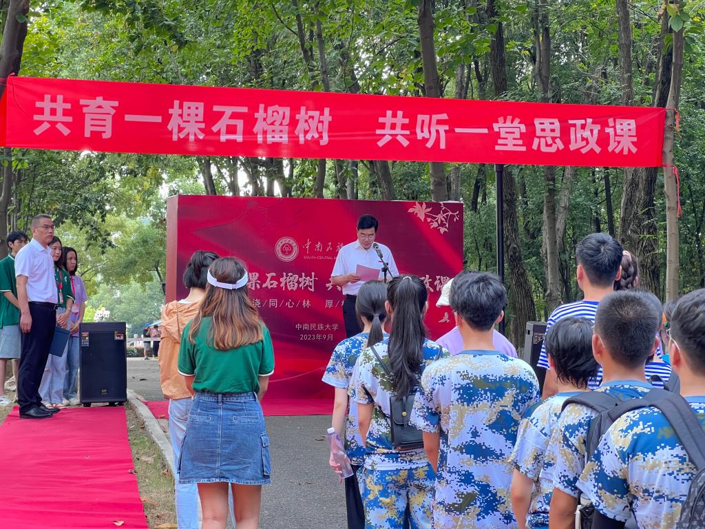 為全面把握習近平總書記關于加強和改進民族工作的重要思想,將鑄牢中華民族共同體意識教育融入思政課教學內容,不斷夯實當代大學生鑄牢中華民族共同體意識思想基礎,將“四個與共”“五個認同”意識植根在各族大學生心靈深處,9月8日,來自五湖四海的民大學子們齊聚南湖園石榴園,共育一顆石榴樹,共聽一堂思政課。