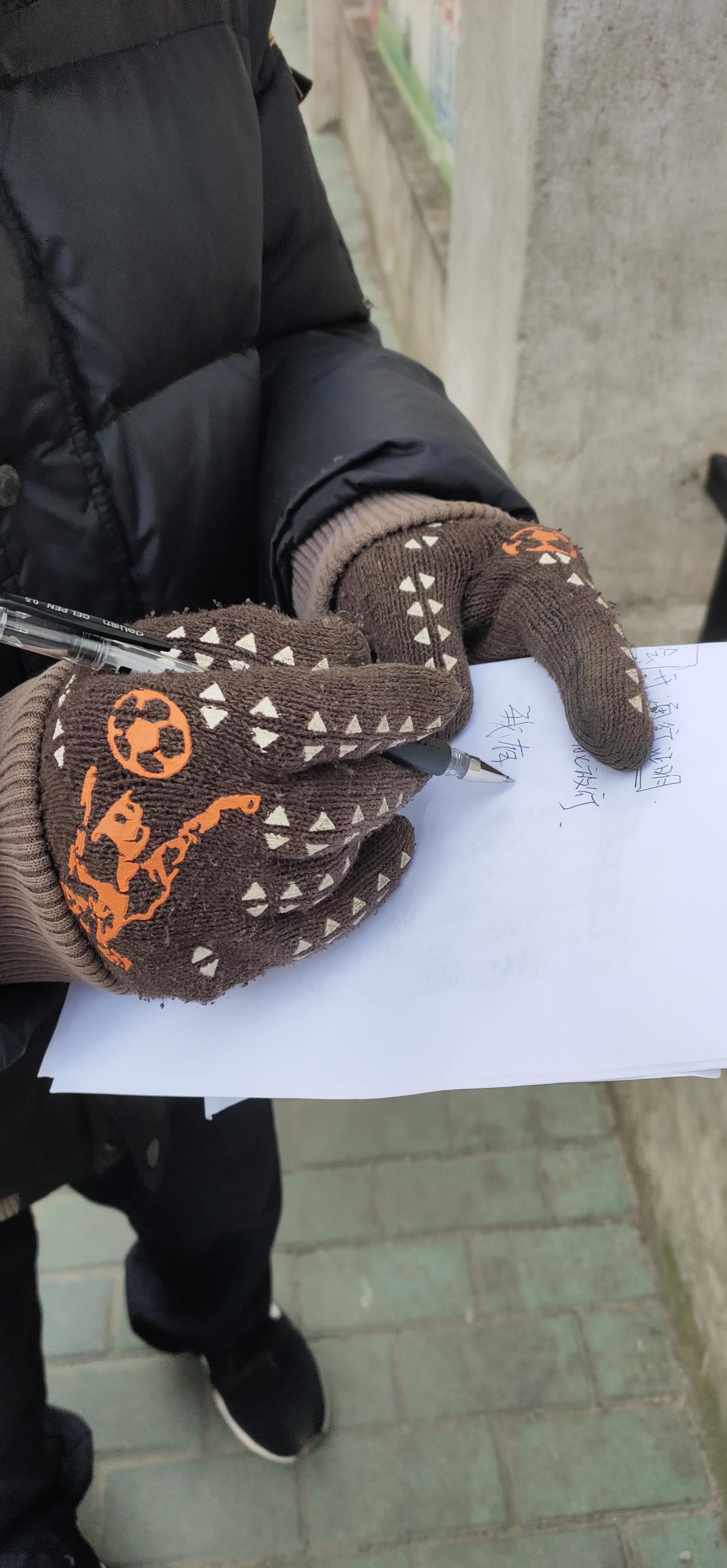 陳驪姍逐戶上門排查發(fā)熱情況。 在她眼中,這次志愿服務(wù)也是一次深切的“為民服務(wù)”,因為是老小區(qū)改造,所以小區(qū)里的居民普遍年齡偏大,不會用電子設(shè)備,沒辦法線上支付,所以在她看來很日常的、可以足不出戶完成的充水電費、點外賣、查詢信息、預(yù)約采購對于這群老年人來說都是困難事,對于普通家庭而言可以在網(wǎng)上一次性團購一星期的菜,對于這些老年人來說就是既付不起又吃不完。對一些腿腳不便或者有其他病癥的老人來說,抗疫的時間就變得更為困難。作為志愿者,最重點要關(guān)注和幫扶的就是這樣一批人,特別是政府每次有新的管控措施出來,看不見的通知要一字字的念給他們聽,要仔細、耐心的一點點解釋。令人開心的是有很多爺爺奶奶之前和我爺爺奶奶是一個廠的同事,有些甚至還認得我,知道我在這邊最志愿服務(wù)也挺配合的,甚至還會在遇到的時候“幫腔”(幫說話)。 志愿工作中印象最深的是,有一天中午遇到一對聾啞夫妻要出小區(qū),只能通過寫字和他們交流,在她的幫助下聾啞夫妻順利找到小區(qū)內(nèi)部的藥店后,那個老爺爺還特意又來了一趟她值班的崗?fù)ぃ嵬嵝毙钡膶懴?/span>“謝謝”。她說:“這些不經(jīng)意的感動不斷的加深著我對這份志愿工作的堅守,也讓我更加堅信這場戰(zhàn)“疫”我們終將勝利。”