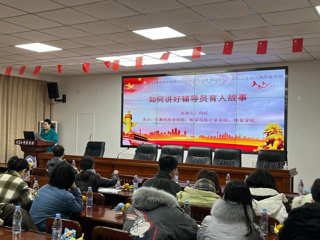 為加強輔導員工作交流研討,推動輔導員隊伍專業化職業化發展,提升我校學生工作水平,12月14日上午,由黨委學工部主辦,計算機科學學院、數學與統計學學院、體育學院共同承辦的“輔導員如何講好育人故事——輔導員思享匯”活動在9號樓211會議室舉行。由電子信息工程學院學生工作辦公室主任向紅主講,黨委學工部相關負責人及部分學院副書記、輔導員參加了本次活動,活動由計算機科學學院學工辦主任由永慧主持。