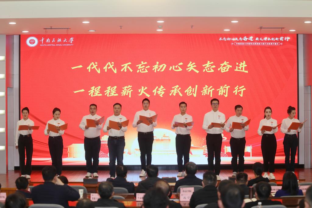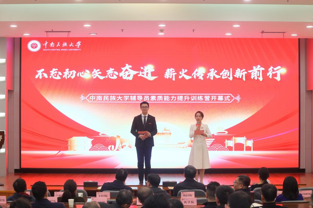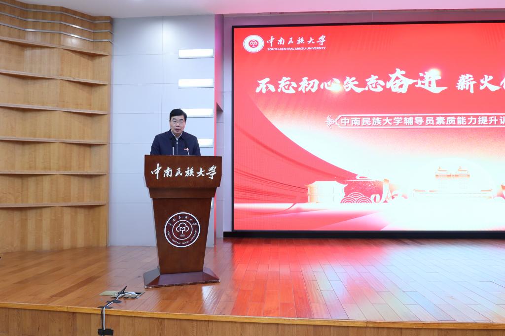 為全面貫徹習近平新時代中國特色社會主義思想,緊緊圍繞鑄牢中華民族共同體意識,加強輔導員隊伍專業素質能力建設,11月21日晚,中南民族大學輔導員素質能力提升訓練營開幕式在國際會議交流中心舉行。校黨委書記邊境,校黨委副書記、校長李金林,校黨委常委、副校長李紅燕出席會議。各職能部門、學院主要負責人,學院黨委副書記、全體本預科、研究生輔導員200余人參加開幕式。