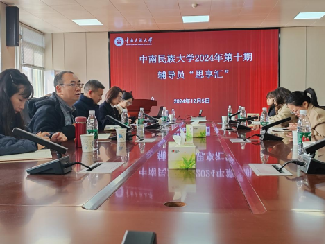 12月5日上午,中南民族大學第十期輔導員“思享匯”在管理學院206會議室舉辦,中南財經政法大學督察辦公室副主任兼法律事務部副部長萬思露受邀作主題報告,探析“高校學生管理的法治思維融入和現實應對”。