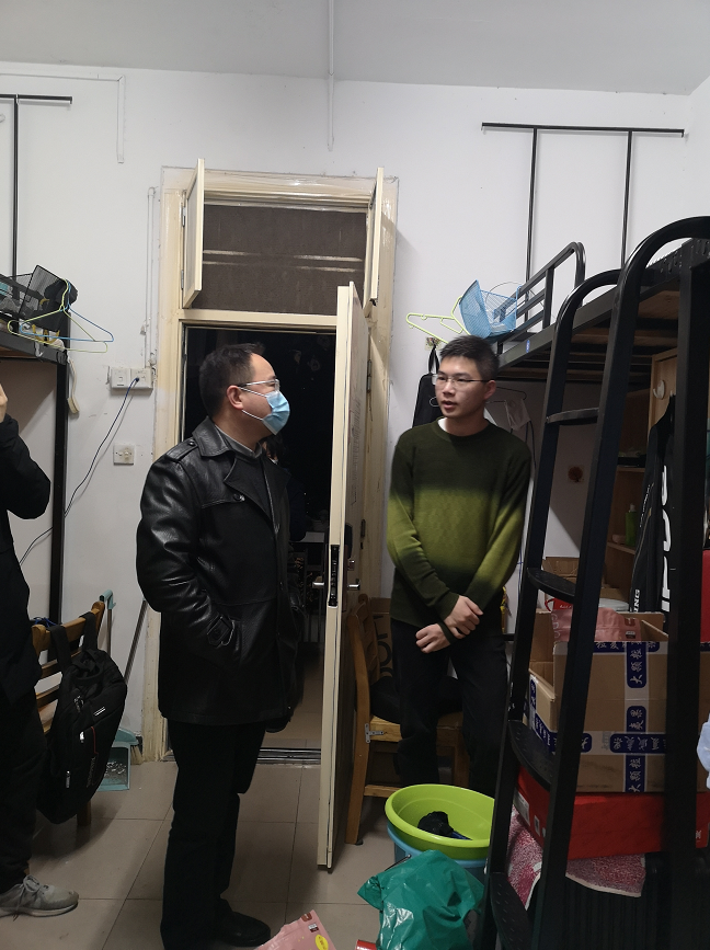 2021年12月9日晚,為進一步了解畢業生學習生活情況,計算機科學學院副院長、計科1801班班導師帖軍,軟工1804班班導師張嫣,網工1803班班導師徐薇,智科1802班班導師唐菀和自動化1802班班導師樊金榮等一行深入走訪了畢業生宿舍。