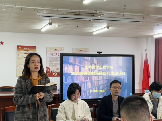 為加強班導師與班級聯系,增進班導師與班級學生之間的了解,傾聽和解決學生在學習生活中的困難,生物醫學工程學院于12月9日中午在16棟713召開了2020級班導師師生座談會, 2020級全體導師和各班學生代表參加,會議由20級輔導員葉穎主持。